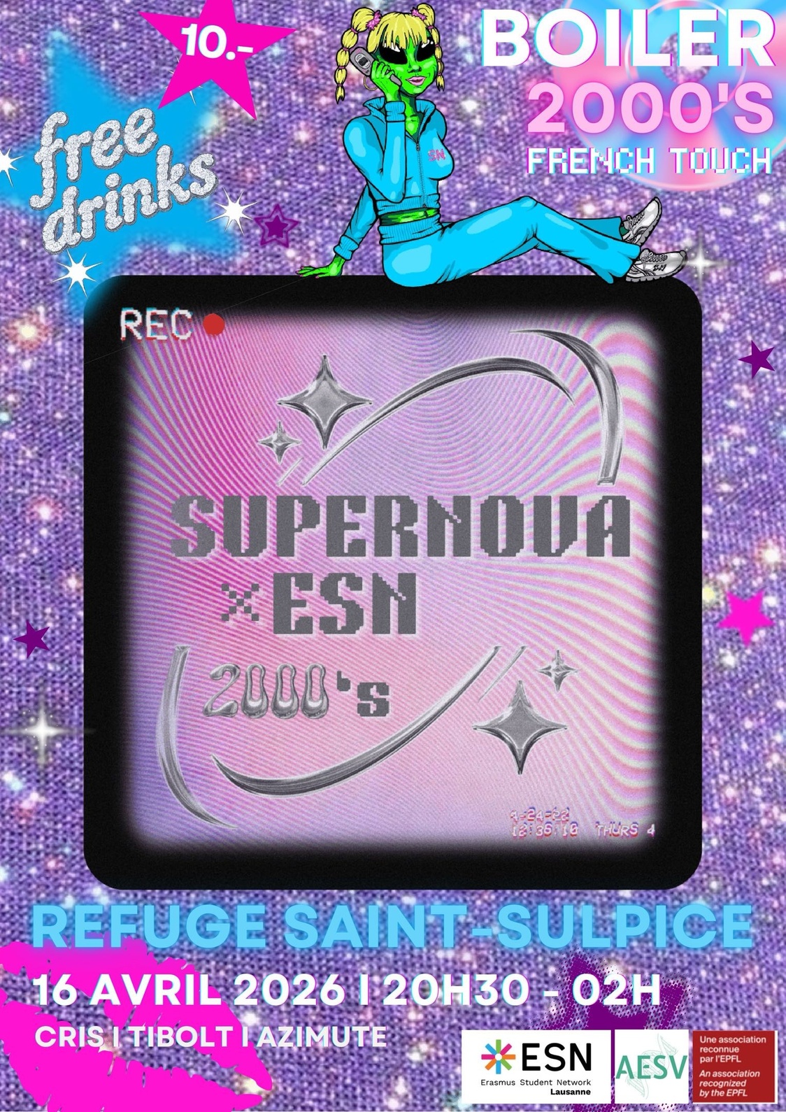 Expect the full throwback experience: electro, nostalgic vibes, and an unforgettable night powered by ESN and SuperNova.
